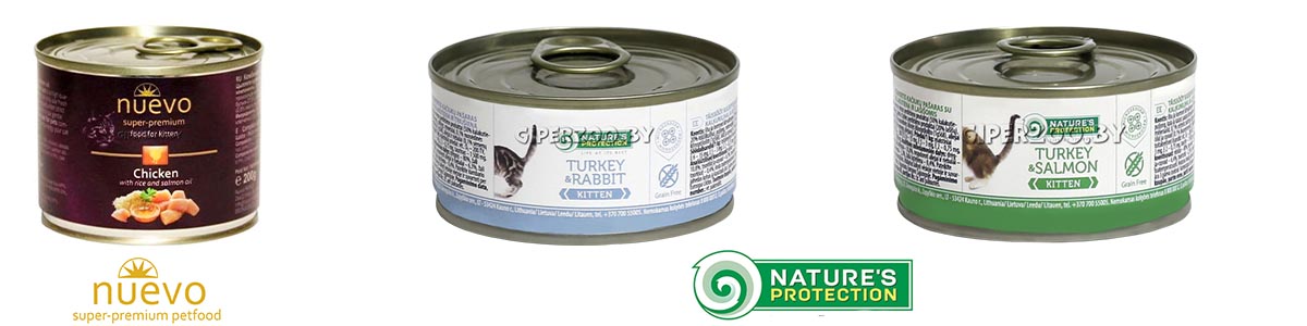 - Nature's Protection Kitten c индейкой и кроликом. Выпускаются в фасовке 100 гр и 400 гр
