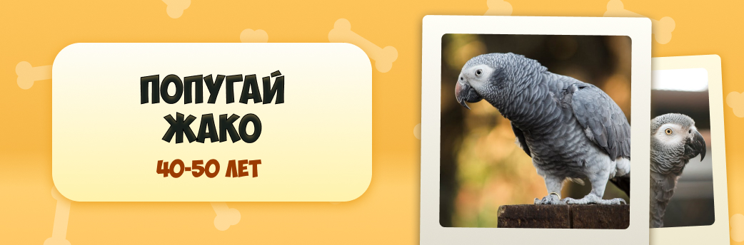 Африканский серый попугай, или жако, считается одним из самых умных видов попугаев. Продолжительность жизни попугаев жако в домашних условиях составляет 40-50 лет, что делает их питомцами на всю жизнь. Максимальная зафиксированная продолжительность жизни жако — 49,7 года, хотя владельцы часто сообщают о птицах, доживших до 60 лет.