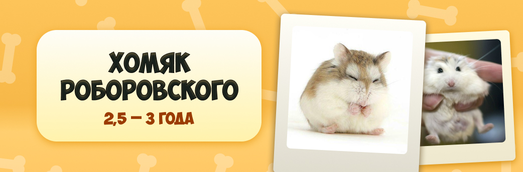 ➡ В среднем джунгарские хомяки живут от 1,5 до 2 лет, реже — до 2,5 лет.