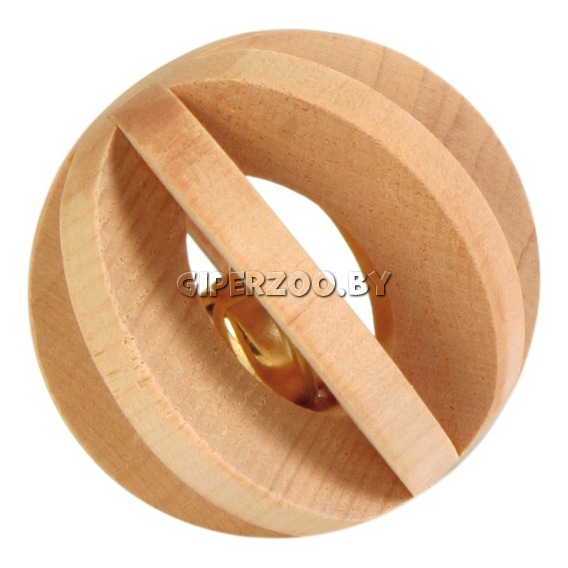Игрушка TRIXIE для грызунов Мяч, нат.дерево диам. 6 см -с колокольчиком, - необработанная древесина - подходит морским свинкам и хорькам