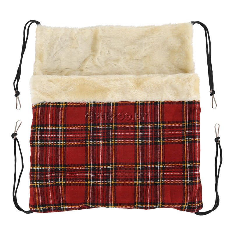 Гамак-карман для грызунов TRIOL 33x31 см (41901001) ‒ очень мягкий плюшевый гамак. Легко подвешивается в клетке при помощи карабинов. Цвет: красный в клетку. Размер гамака с креплениями: 67×32 см.