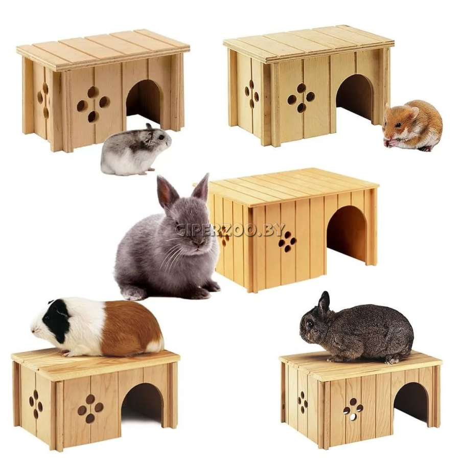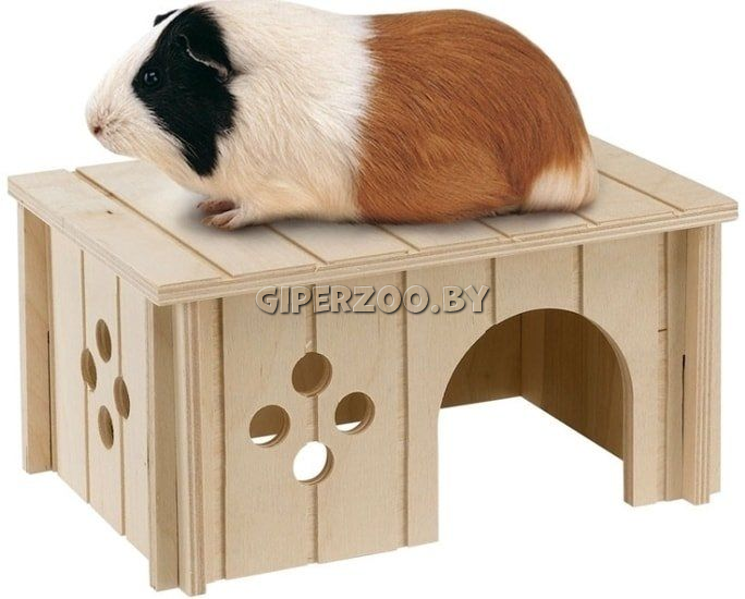 Деревянный домик для морских свинок SIN4645 имеет боковой вход, который послужит надежным укрытием вашему питомцу.