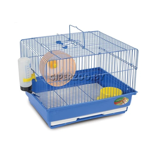 В комплект изделия входят удобная ручка для переноски, кормушка, поилка и беговое колесо. Последнее выполнено из пластика. Модель быстро собирается и разбирается.