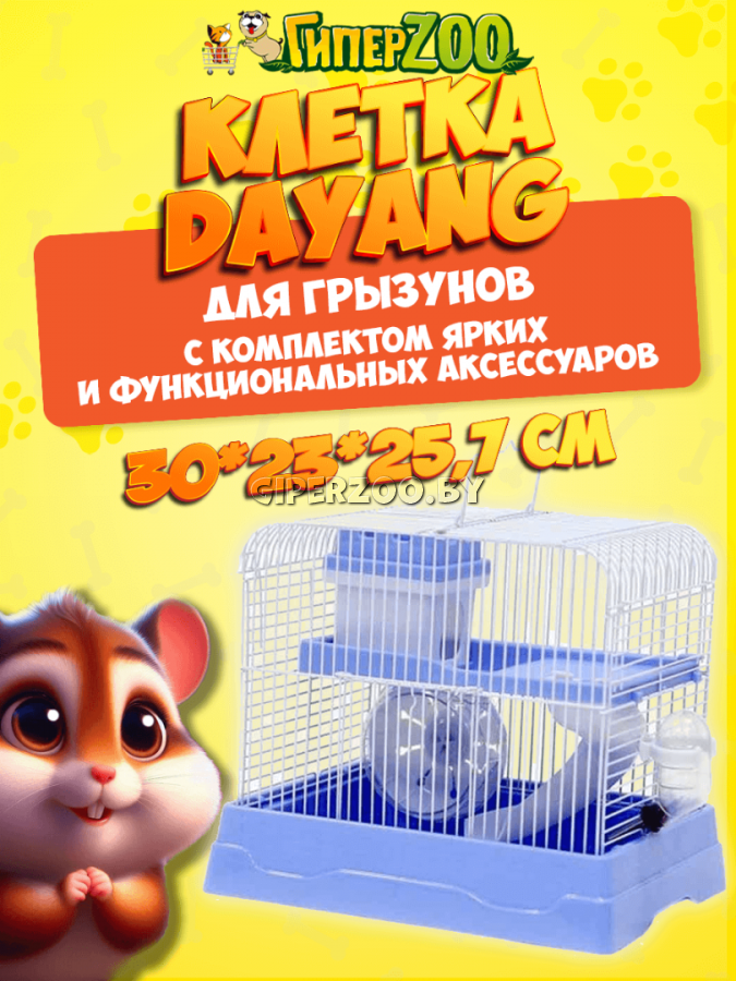 Клетка для грызунов DAYANG 30х23х25,7 см (187) — это двухэтажная модель классической клетки, которая станет отличным домом для питомца. Внутри, благодаря достаточной площади, животное будет чувствовать себя уютно и удобно.