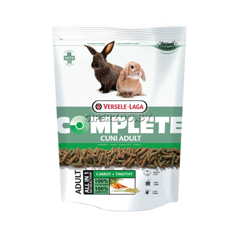 Карликовые кролики это травоядные животные от природы, которым необходимо питание с достаточным количеством клетчатки и низким содержанием крахмала. Cuni Complete содержит 20 % грубых волокон. Новый, уникальный производственный процесс позволяет включать в корма серии Complete цельные, длинные, волокна, богатые силикатом. Эти волокна обычно есть в природном корме. Эти длинные волокна поддерживают и улучшают функцию пищеварения и роста зубов намного лучше, чем традиционные корма для грызунов, содержащие перемолотые волокна.