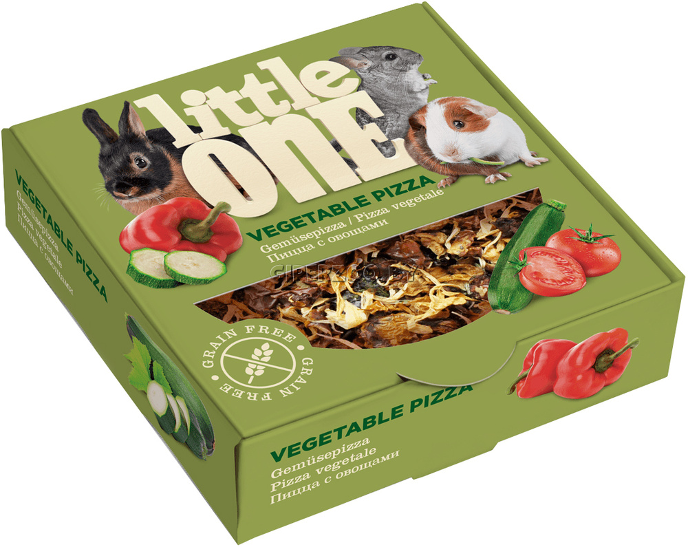 Овощная пицца Little One приготовлена специально для декоративных животных. Ее основа изготовлена из ароматной петрушки, выращенной в открытом грунте под солнцем.