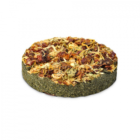 Овощной топпинг состоит из сушеного кабачка, томата, перца, лепестков календулы и овсяных хлопьев. Такой состав делает пиццу настоящим удовольствием для домашних питомцев, а также источником витаминов и других питательных веществ.