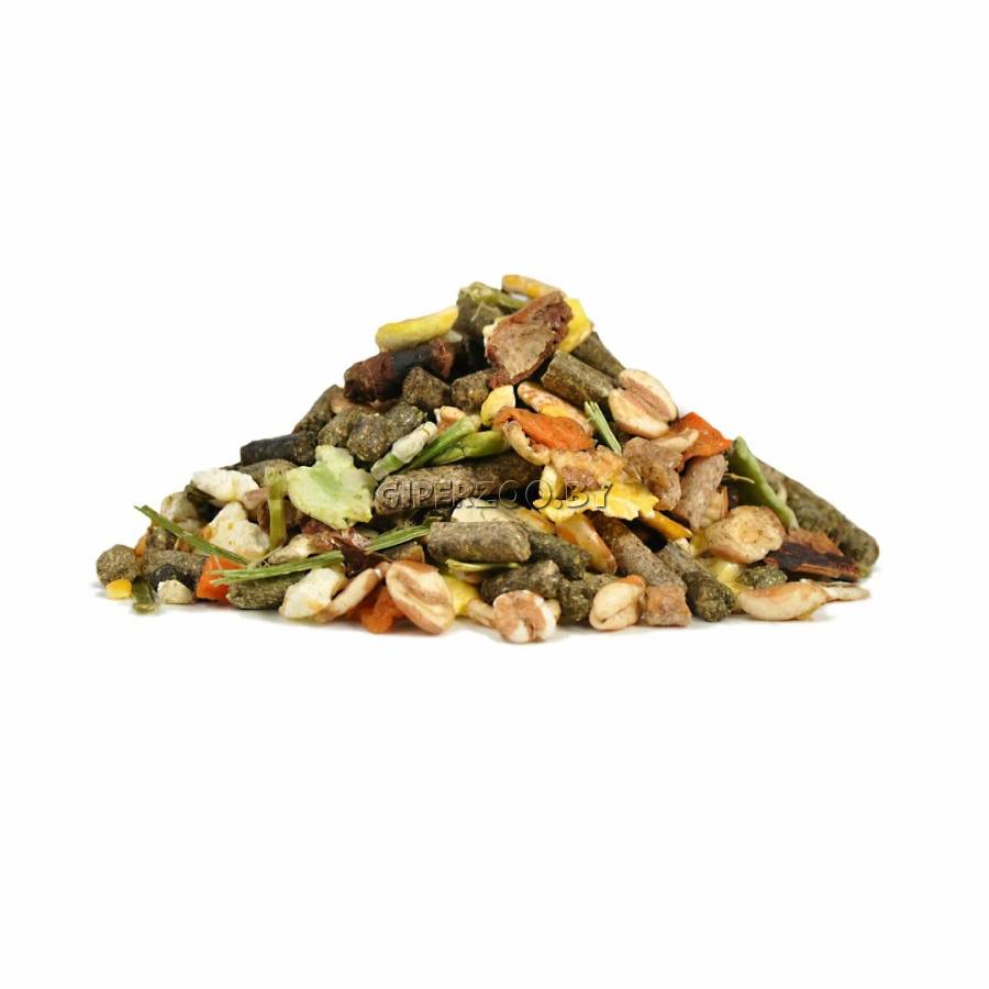 - Травяные гранулы: основа рациона, богатая клетчаткой.