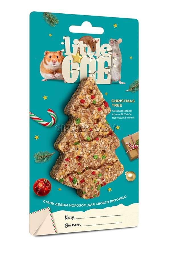 Little One Лакомство-игрушка новогодняя елочка для хомячков, крыс, мышей и песчанок, 45 гр – это не только вкусное угощение, но и оригинальный подарок для вашего питомца. Елочка из — подарит вашему хомячку, крысе, мышке или песчанке праздничное настроение. Полностью съедобная игрушка с хрустящей текстурой не только порадует питомца, но и поможет ухаживать за его зубками.
