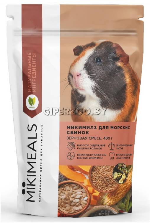 В дикой природе морские свинки получают сложный набор питательных веществ из разнообразных трав, цветов и лиственных кустарников для поддержания оптимального здоровья. Будучи травоядными, морские свинки нуждаются в рационе с высоким содержанием клетчатки для обеспечения необходимыми питательными веществами, поддержания надлежащего уровня бактерий в кишечнике и здоровья пищеварения. Эксперты по питанию животных компании МИКИМИЛЗ разработали смесь для морских свинок. Вдохновленная привычками предков морских свинок, смесь МИКИМИЛЗ состоит и