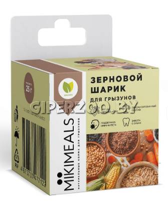 MIKIMEALS Зерновой шарик – это отличное лакомство, состоящее из зерновых, орехов, кусочков фруктов и семечек. Прочная структура шарика дает возможность вашему любимцу грызть, катать, толкать шарик, вызывая только положительные эмоции.