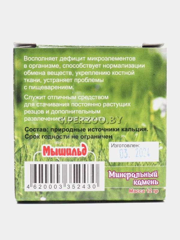 Мышильд Минеральный камень для грызунов Зефир — минеральный камень без добавления соли, являющийся хорошим источником незаменимых микроэлементов.