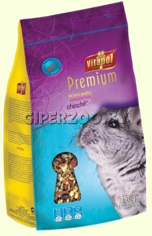Vitapol Premium Корм полнорационный для шиншиллы 750 г Сбалансированный и питательный корм для шиншиллы является источником витаминов и минеральных веществ, необходимых для правильного развития грызунов. Структура корма обеспечивает стирание зубов грызунов, а содержащиеся в нем ингредиенты улучшают состояние меха, делая его мягким и блестящим.