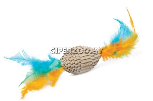 Игрушка для кошек из гофрокартона Мяч для регби с перьями