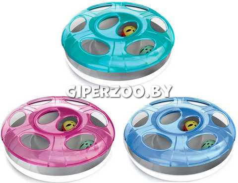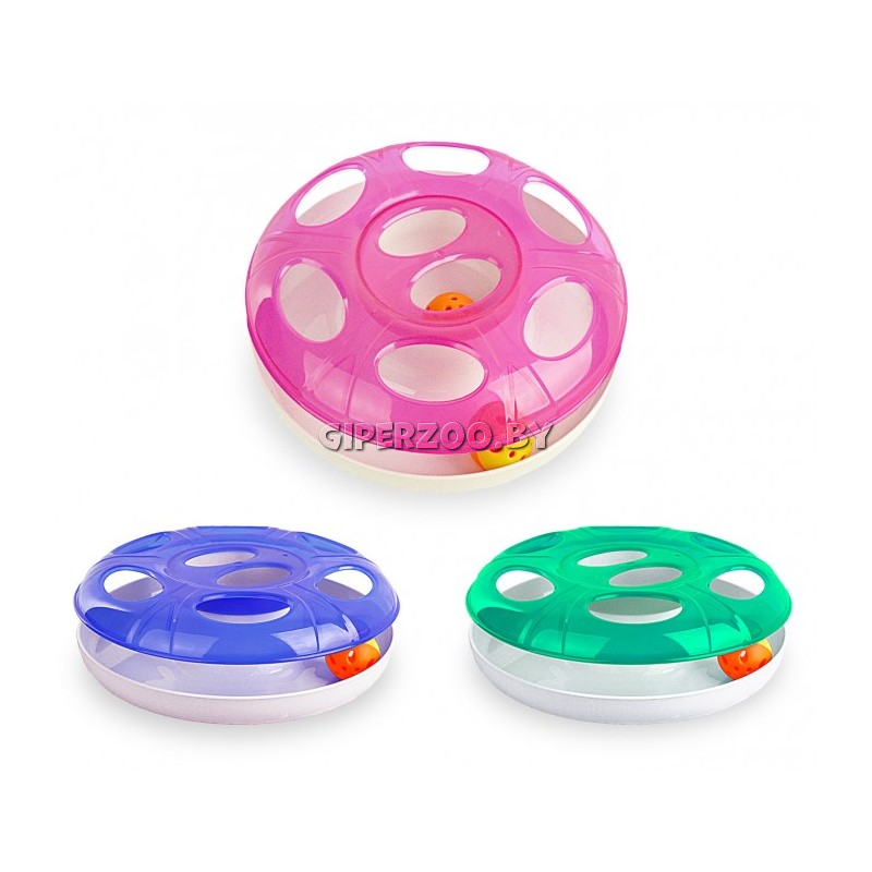 Напольная игрушка Georplast для кошек с 2 шариками Ufo с шариками - интерактивная игрушка для котов с произвольно катающимся внутри круглого корпуса с отверстиями для лап 25*8 см.