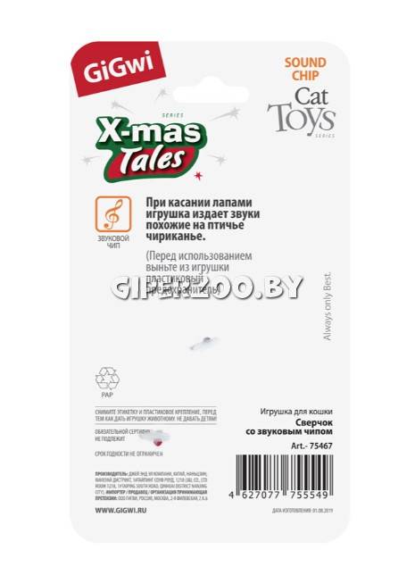 GiGwi X-mas Tales Сверчок со звуковым чипом, выполненная из текстиля, не позволит заскучать вашему пушистому питомцу.