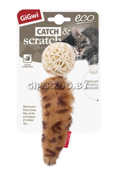 GiGwi CATCH & SCRATCH ECO Плетеный мячик с кошачьей мятой – игрушка для кошек дополнена колокольчиком и хвостиком из искусственного меха.