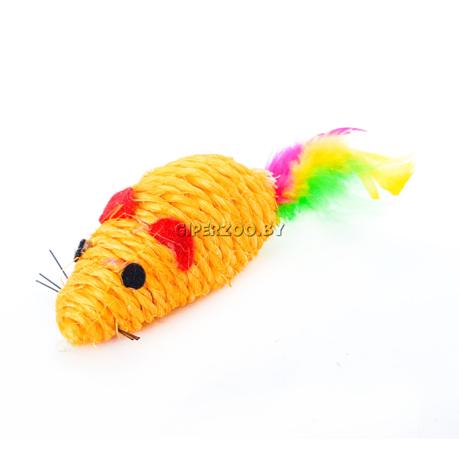 Мышь из сизаля для кошек. Сизаль – натуральный и долговечный материал, поэтому игрушки из сизаля очень прочные и абсолютно безвредные для здоровья Вашего питомца. Материал: сизаль, перо. Размер: 7см. Кол-во в упаковке: 10шт