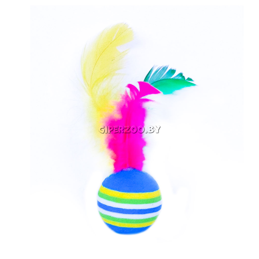 Игрушка For Friends для кошек "Мяч радужный с пером", 3,5см (20шт)