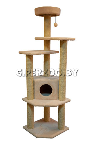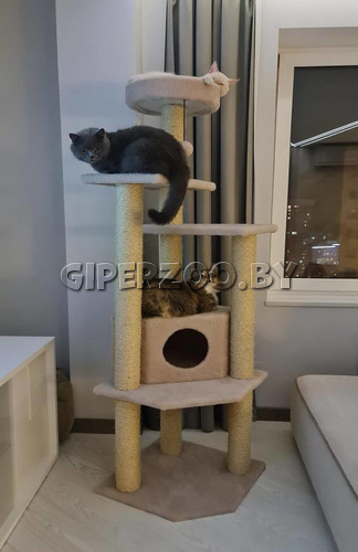 Питомец, ведомый инстинктами, с удовольствием поточит коготки о сизалевые столбики, заберется на самый верхний уровень, поиграет с игрушкой или отдохнёт в домике, скрывающем его ото всех.