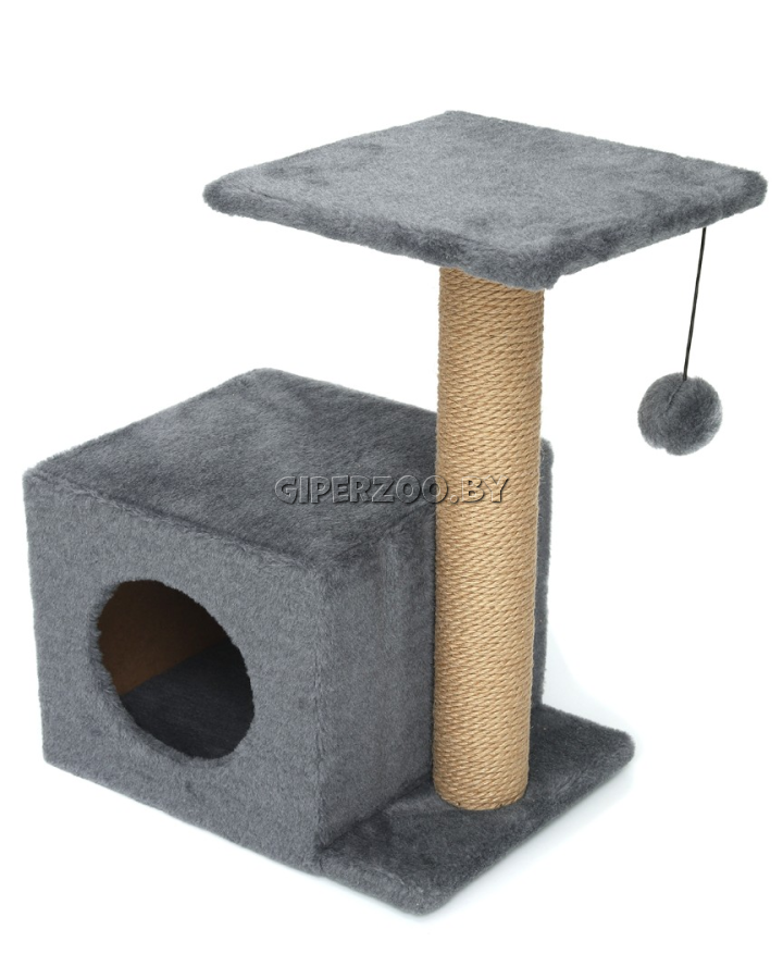Когтеточка Домик с боковой полкой Cat House серая (джут), 58 см - комфорт и уют в доме нужен не только людям, но и домашним питомцам. Особенно это касается грациозных кошек, которые любят свернуться клубочком на мягком диване, прилечь на кресло или ваше платье, забытое на стуле.