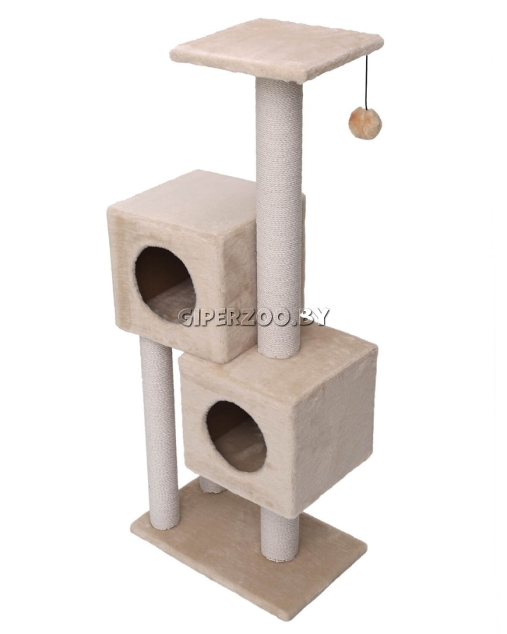 Cat House Игровой комплекс "Двойной домик" бежевый (хлопок), 127 см- это уникальная модель, сочетающая в себе место для точения когтей, сна, отдыха и игр.