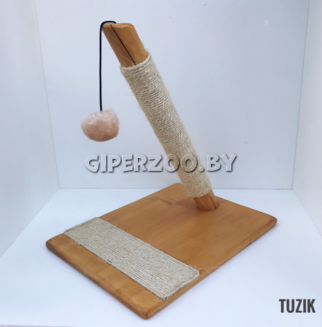 Four Pets Когтеточка деревянная столбик сизаль с мячиком на резинке (бежевая) – практичный аксессуар для стачивания когтей у кошек, помогает животным избавиться от шелушащихся слоев когтя, причиняющих дискомфорт подушечкам лап.