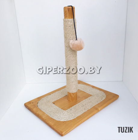 Когтеточка деревянная столбик сизаль с мячиком на резинке (светло-коричневая)
