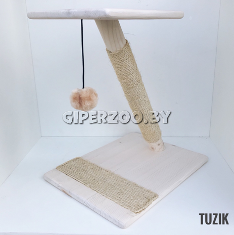 Когтеточка деревянная полка сизаль с мячиком на резинке (белая)