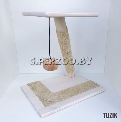 Когтеточка деревянная полка сизаль с мячиком на резинке (белая)