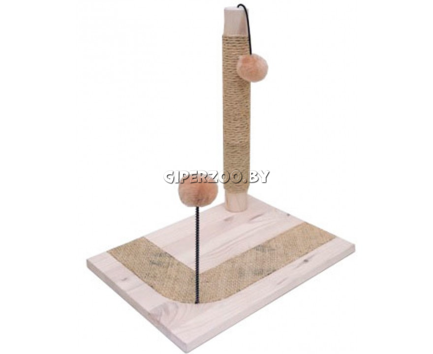 Four Pets Когтеточка деревянная TUZ143бел столбик сизаль c мячиками на пружине и веревке (белая)