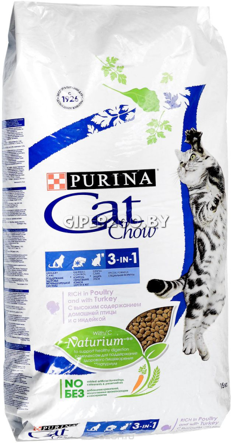 Корм сухой Purina Cat Chow 3 в1 полнорационый для взрослых кошек с индейкой 1,5 кг