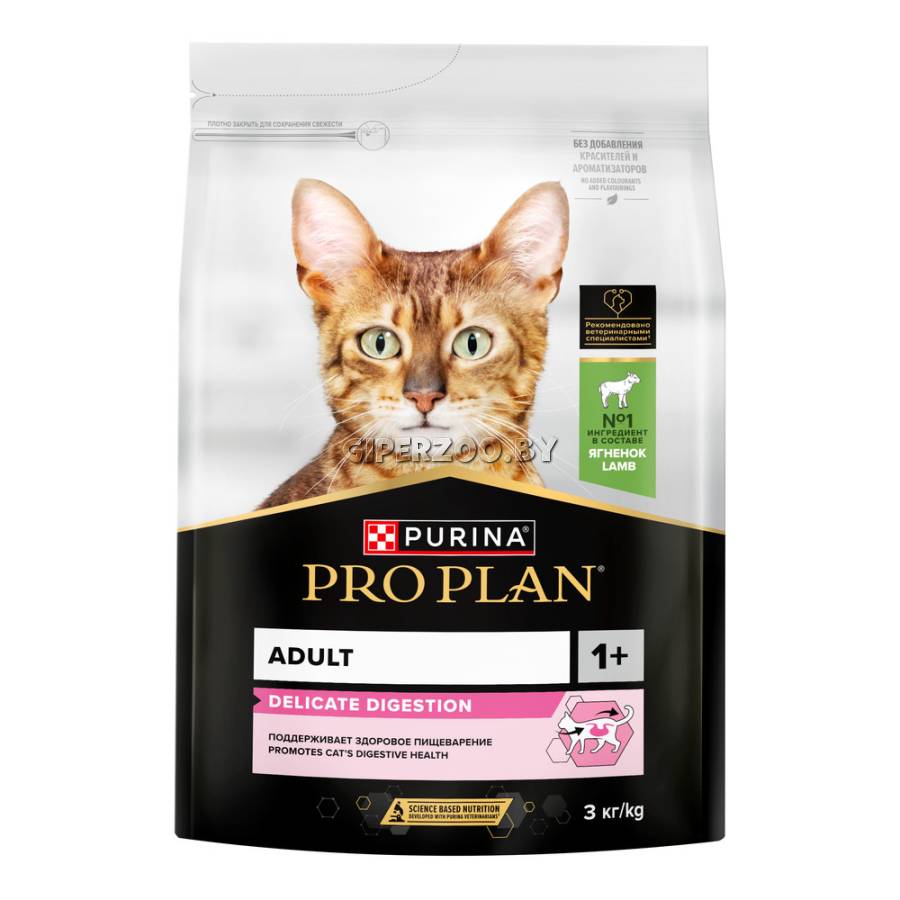 Pro Plan Delicate 1+ (Ягненок), 3 кг - для кошек с чувствительным пищеварением и привередливых к еде, с ягненком, 3кг