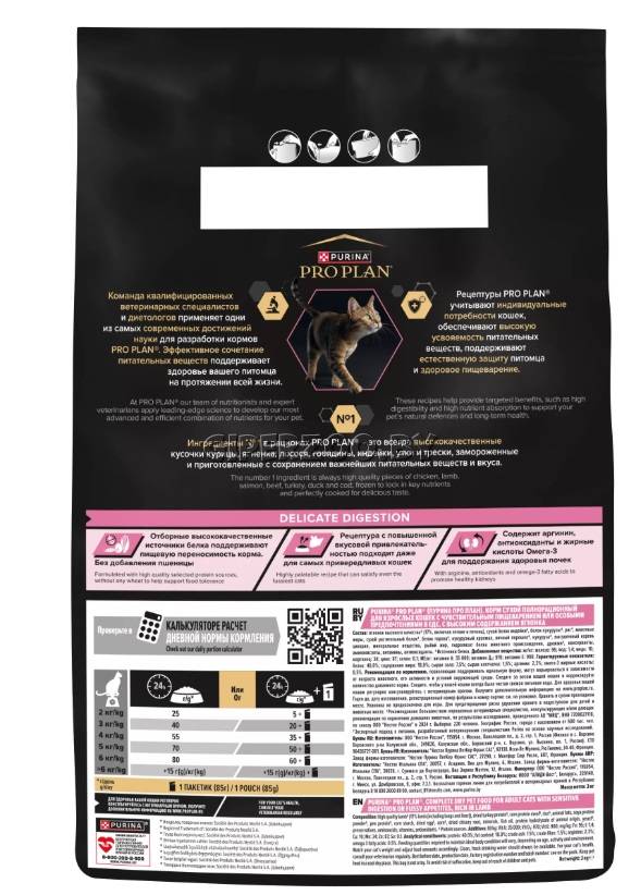 Специальный рацион PRO PLAN® Delicate – сбалансированный корм для кошек, который сочетает все основные питательные вещества, включая витамины и минералы и способствует поддержанию здоровья пищеварительной системы благодаря содержанию пребиотиков.
