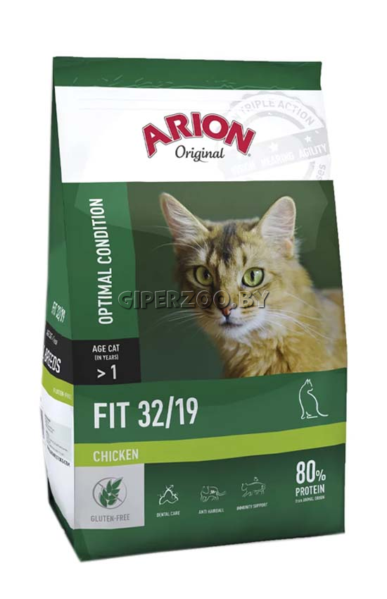 ARION Original Fit (цыплёнок), 7,5 кг - сухой безглютеновый корм, специально разработан для поддержания кошек на открытом воздухе в отличном состоянии и обеспечения их энергией для приключений.Состав: С цыпленком (32%), рисом, животным жиром, горохом, сушеным картофелем, свекольным жомом, минералами, гидролизованным животным белком, рафинированной целлюлозой, сухими пивными дрожжами, рыбьим жиром, МОС, ФОС, ß-глюканами, растительными экстрактами (Rosmarinus sp., Curcuma sp., Citrus sp., Eugenia sp.).ARION Original не содержит глютена, рецепты не содержат пшеницу, рожь или ячмень. Наши ингредиенты закупаются без ГМО, и не добавляются ненужные добавки, такие как ароматизаторы и красители.•Многофакторный подход к хорошему здоровью полости рта.•Ряд антиоксидантов укрепляют иммунную систему.•Добавленное волокно уменьшает образование комков шерсти.