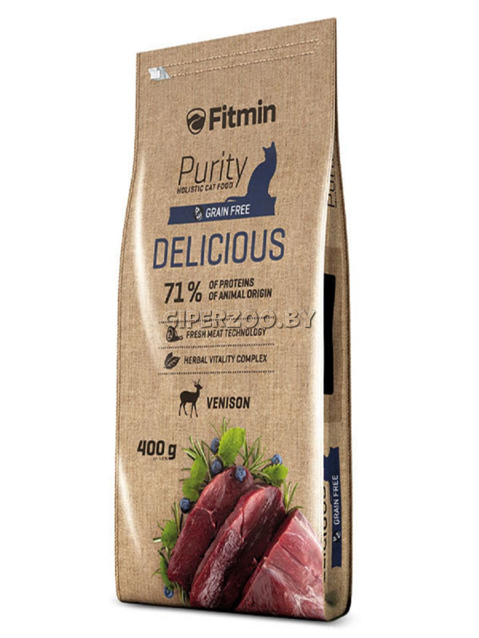 Fitmin Cat Purity Delicious (оленина), 400 гр - Беззерновое питание, разработанное специально для домашних кошек, со вкусом оленины.Беззерновой корм для привередливых кошек Относится к классу холистик.