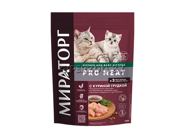 Winner Мираторг Pro Meat Mother and Baby Kittens (Курица) — сухой корм для для беременных, кормящих кошек, котят от 1 до 4 месяцев.