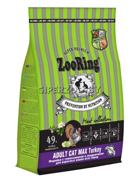 ZooRing Adult Cat (индейка), 1,5 кг - сухой корм для взрослых кошек крупных пород с идейкой, глюкозамином и хондроитином. Полнорационный сухой корм супер-премиум класс для взрослых кошек всех пород, особенно подходит питомцам крупных пород.
