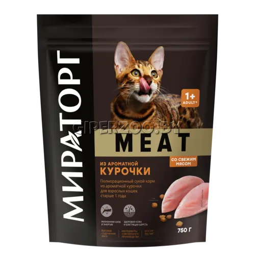 Корм сухой Мираторг Meat из ароматной курочки для взрослых кошек старше 1 года 0,75кг Без сои и ГМО.