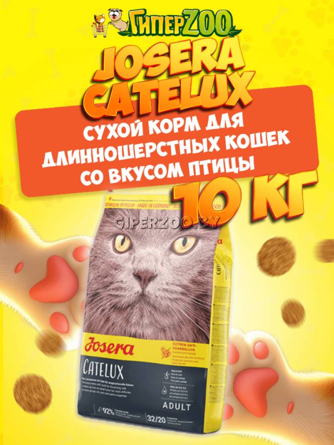 Josera Catelux для взрослых длинношерстных и привередливых кошек, 15 кг Специальные пищевые волокна обеспечивают перемещение проглоченных волос через пищеварительный тракт. Таким образом, предотвращается образование комков шерсти в желудке.