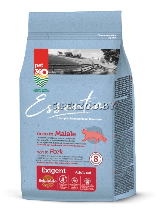 Полнорационный корм для взрослых кошек со свининой Pet360 ESSENTIA для стерилизованных кошек со свининой, 1,5 кг