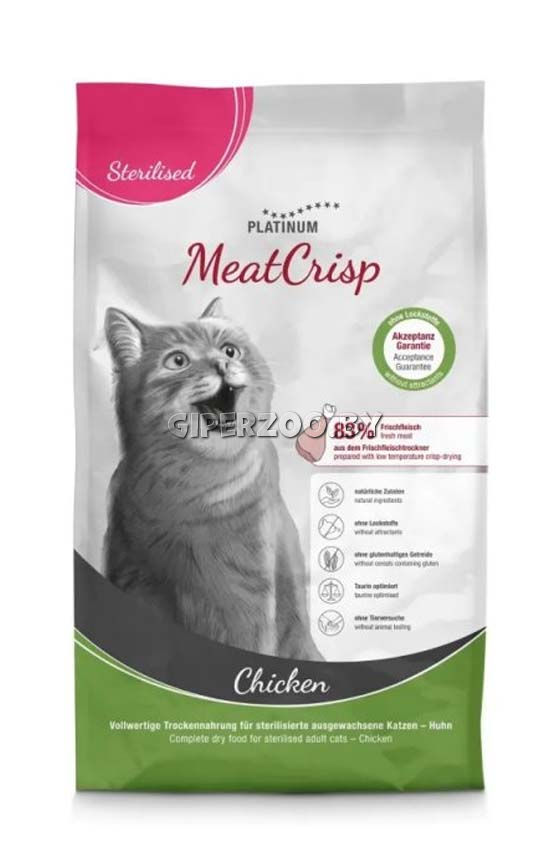 Сухой корм Платинум MeatCrisp Sterilised (курица), 1,5 кг - сухой корм для стерилизованных кошек. Полноценный рацион для стерилизованных кошек и кошек со сниженным уровнем активности.
