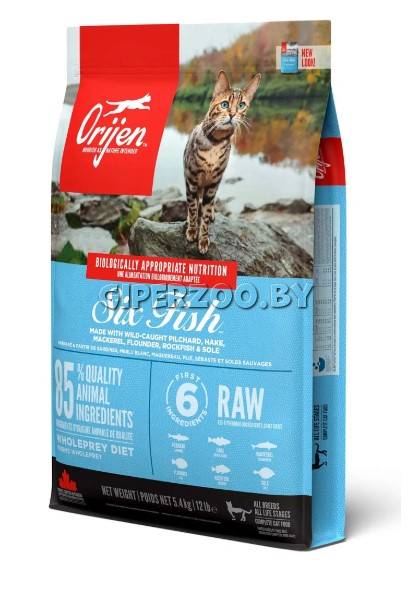 Сухой беззерновой корм Orijen Cat 6 fish – это полнорационный корм для ежедневного кормления котят и кошек разных пород.