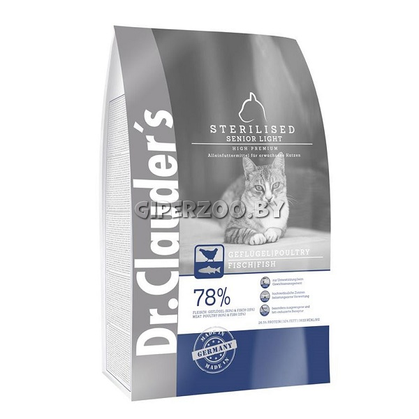 Корм Dr.Clauder's High Premium Sterilised Senior Light, 400гр предназначен для стерилизованных кошек, кошек с избыточным весом и/или старше 8 лет.