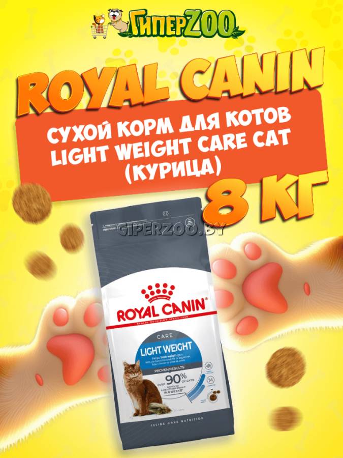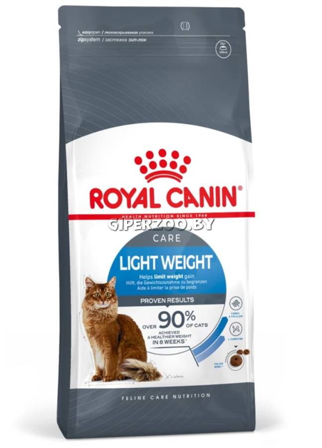 Поддержание веса питомца Имеет ли ваша кошка склонность к полноте? Поддержание веса в пределах нормы и сохранение мышечной массы являются залогом здоровья вашей кошки.Сбалансированный состав корма LIGHT WEIGHT CARE помогает поддерживать вес в пределах нормы. Содержание клетчатки различных типов, в том числе подорожника, способствует увеличению объема пищи в желудке, что приводит к спонтанному снижению аппетита. Поддержание мышечной массы Повышенное содержание белка способствует поддержанию оптимальной мышечной массы. Пониженное содержание жиров снижает риск набора избыточного веса. L-картинин Содержит L-карнитин, участвующий в метаболизме жиров. Здоровая мочевыделительная система Разработан для поддержания нормальной работы мочевыделительной системы взрослой кошки за счет сбалансированного содержания минералов.