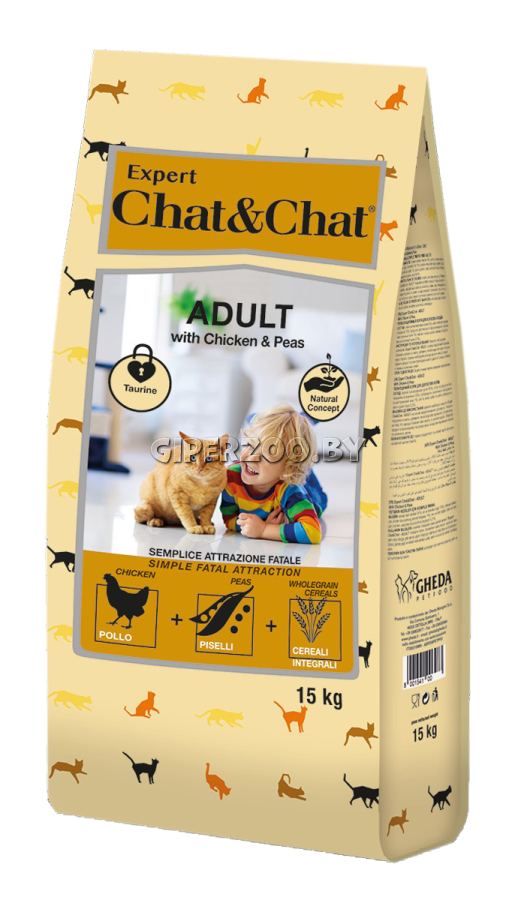 Chat&Chat Expert Adult Cat (курица и горох), 14 кг - полнорационный сухой корм премиум класса для взрослых кошек с курицей и горохом.