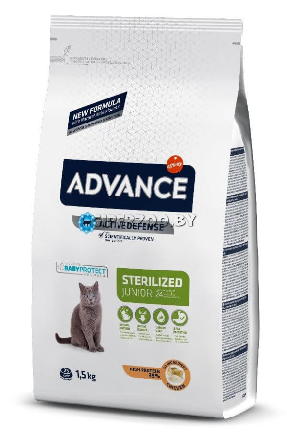 Advance Cat Young Sterilized (Курица и рис) 1,5 кг - это высококачественный сбалансированный полнорационный корм для стерилизованных кошек с чувствительным пищеварением.