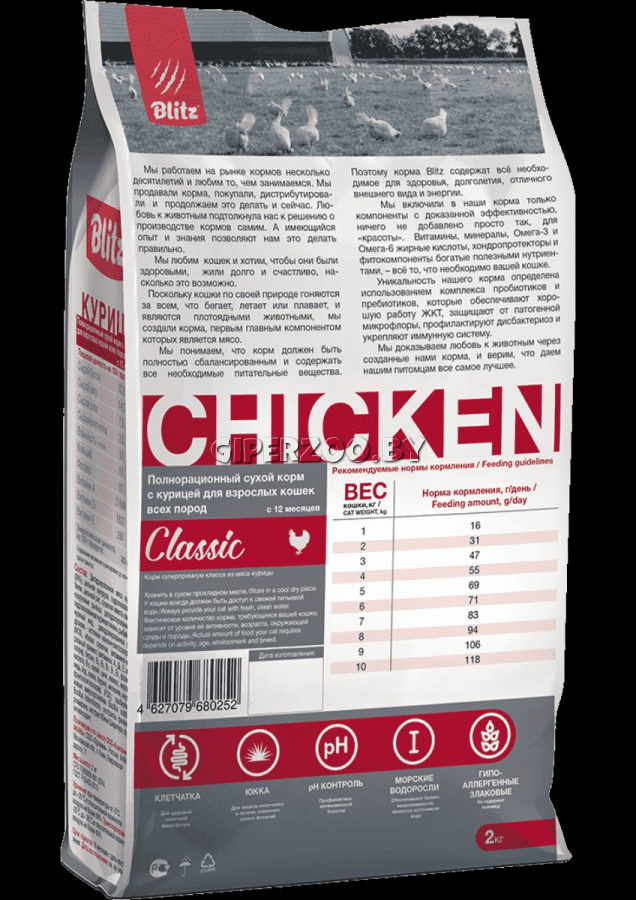 Blitz Classic Chicken Adult Cats (курица), 10 кг - Полнорационный сухой корм Blitz For Adult Cats Chicken создан для взрослых кошек всех пород на основе одного источника животного белка.