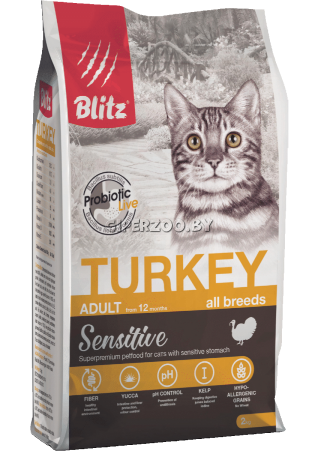 Blitz Sensitive Turkey Adult Cats (индейка), 400 гр - полнорационный сухой корм для взрослых кошек "Индейка" — Blitz for Adult Cats Turkey — предназначен для всех пород и порадует даже самых привередливых питомцев.