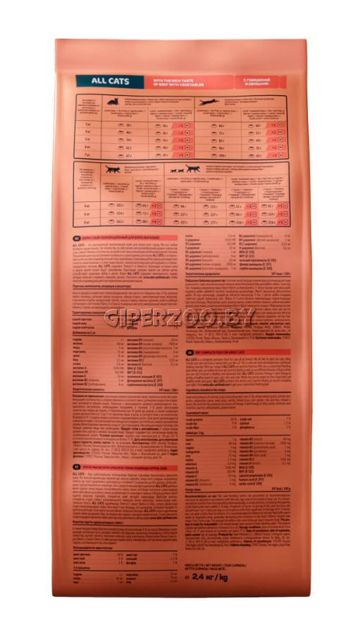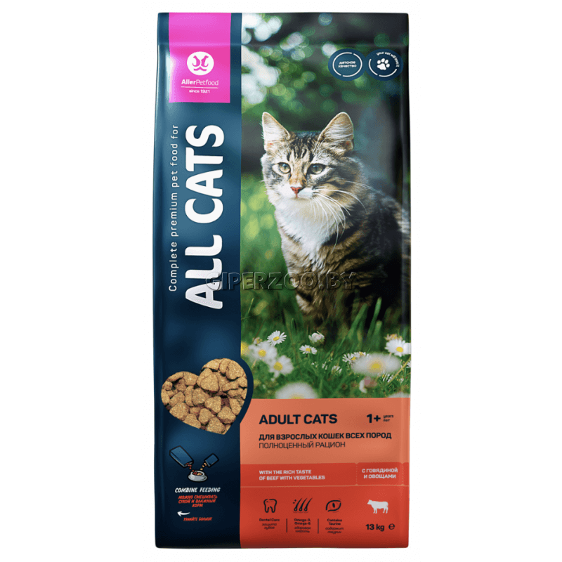 ALL CATS (говядина и овощи) 13 кг - это полноценный рацион для кошек любых пород, размеров, возраста и уровня активности.